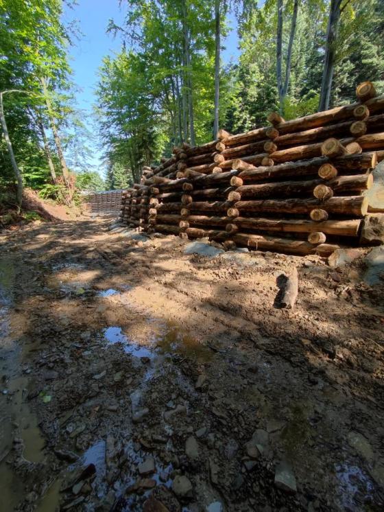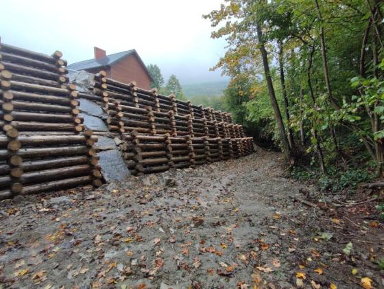 - zabudową przeciwerozyjną dróg, szlaków zrywkowych oraz zabezpieczeniem obiektów infrastruktury leśnej przed skutkami nadmiernej erozji wodnej związanej z gwałtownymi opadami (m.in. wodospusty, płotki drewniane, dylowanki, kaszyce, narzut kamienny).